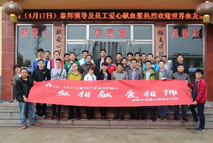 2016年4月16-17日,為迎接第28個(gè)世界血友病日的到來(lái),山東泰邦生物制品有限公司組織員工五十余人到寧陽(yáng)漿站舉行了捐獻血漿公益活動(dòng)?;顒?dòng)以血相融 愛(ài)相擁為主題,旨在以泰邦人的實(shí)際行動(dòng)號召更多的愛(ài)心人士加入到獻漿隊伍,提高公眾對于血友?。δ苷系K遺傳性疾?。┑年P(guān)注度,喚起全社會(huì )對于血友病患者的關(guān)愛(ài)和支持。...